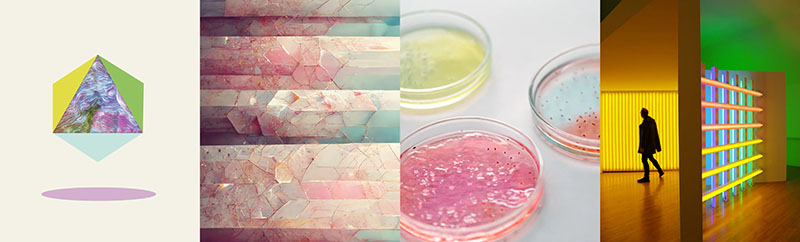 如果你参加一些时尚设计展览会,你会发现走了一圈,可以看到许多令人印象深刻的例子。这一代人,或者说现在我们的室内设计和趋势中正在发生的事情,是色彩和颜色更加大胆、更加自由地组合在一起,这有点类似于一种新的波普艺术,我们可以称之为元艺术形式的出现。基于这种现象,我们来探讨一下NCS色彩2024+色彩趋势的四种主题。