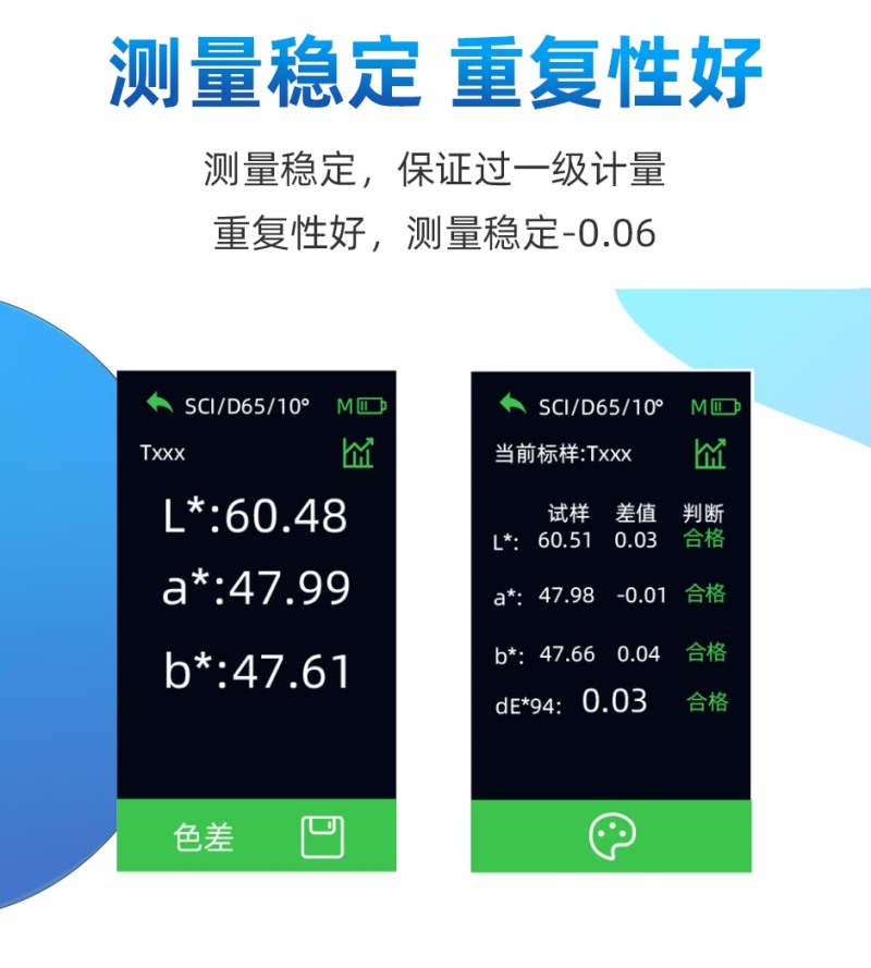 稳定性-0.06、测荧光色、摄像头取景、支持APP、拓展更多功能、海量色卡数据库、云端数据存储、APP修色