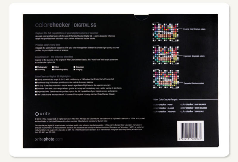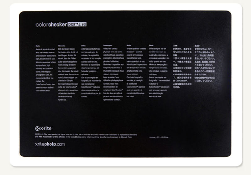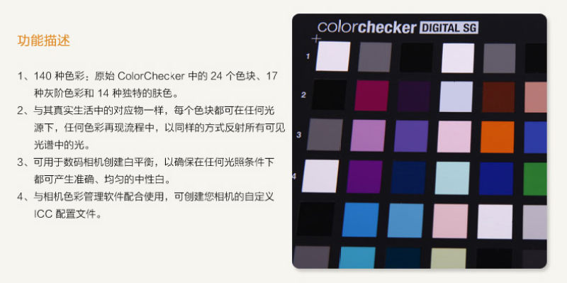 请您记住SG的使用方法与标准ColorChecker色卡是不同的。使用SG卡时,应确保遵循色彩管理软件的使用要求。