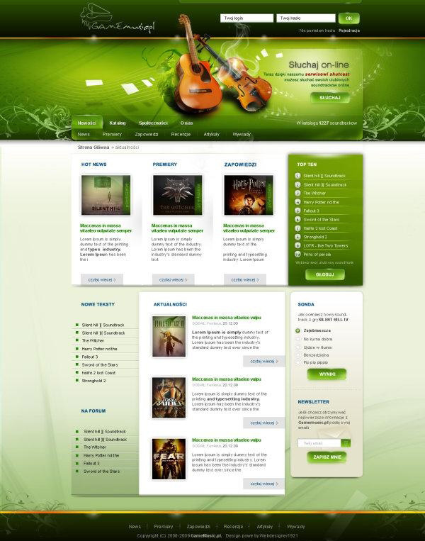 绿色+白谐和,一种天然的典雅的新鲜配色(留意本著作运用白色和绿色大面积渐变来制造柔软轻松的气氛,而且那些水晶感受的按钮,以及小提琴元素,金色丝带个性线上的亮点都让本著作如雨后森林相同漂亮)