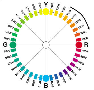 色相环上有四种五颜六色原色,黄、红、蓝、绿,它们把悉数圆环分红四个象限,每一个象限有分为100个等级。要想判别某一个颜色的色相,首先要判别出该色相坐落哪个象限内,然后再判别发生这一色相所需两原色的相对份额。以象限Y_R为例,从Y到Y50R,黄对红的优势逐步削减;从Y50R到R,红对黄的优势逐步添加,一直到红原色为止。若用百分比来阐明颜色的这种标法,就简单了解颜色标号的含义。例如一个颜色的标号为Y70R,就表明这个颜色中赤色对黄色有70%的优势,而黄仅仅占到30%。