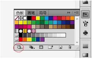 2、点击“色板”,出现如图,再点击红色圈中的图标,就可以在下拉菜单中找到色标簿。如下图所示:
