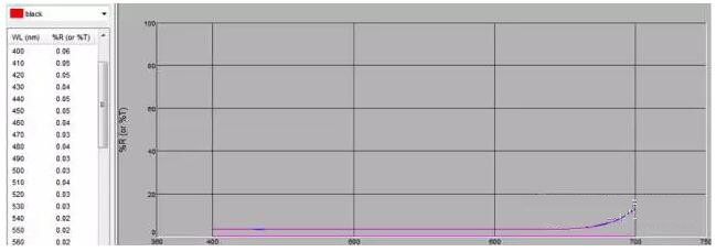Ci64 设备使用 IQC 软件测量所得黑色尼龙的反射率曲线