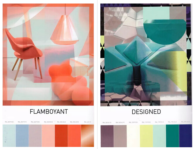 新一季色彩趋势主题为“寻求舒适感”。第一个主题“耀眼优雅FLAMBOYANT”从淡冷粉彩到暖奢华色,代表着在这个充满许多不确定因素与深刻变革的时代,人们寻求着充满能量的空间。 “简约设计DESIGNED”这一趋势表达了以明朗造型为基础的现代实用性,偏冷而理性的趋势色强调了功能性美学及人们对简约而有安全感的生活的追求。