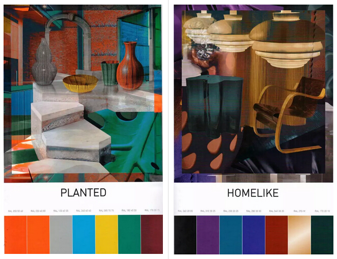 “种植自然PLANTED”这一主题用更有力量而乐观的颜色,表达了在数字化与城市化的背景下,利用大自然的灵感有意识地创造更多空间这一概念。最后一个主题“舒适自在HOMELIKE”强调了重建正在丧失的和谐、大自然与城市生活方式的平衡的重要性,这一主题下的趋势色创造出一种冷淡奢华的氛围。