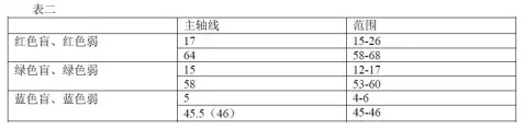 绿色盲、绿色弱:以色相棋子序号15 与58 两连线为主轴线;