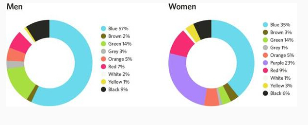 虽然从来都没有什么男性色和女性色这样的具体规则,但是在过去的一个世纪当中,不少研究表明,男女在色彩喜好上是有着明显的差异的:
