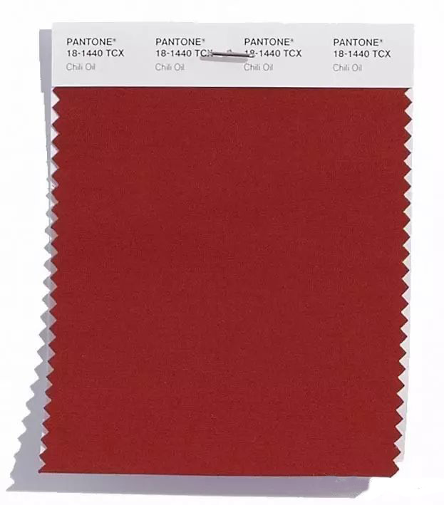 PANTONE 18-1440 Chili Oil椒红色:跨季的椒红色带有泥土的棕褐色影调,辛辣而浓郁。