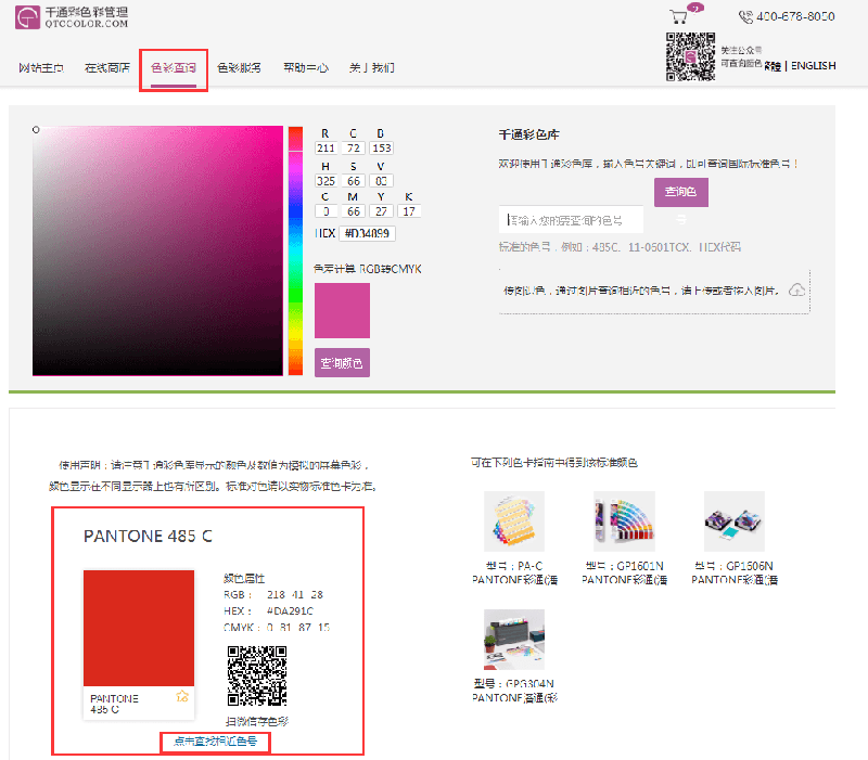 随着用户量的上涨,越来越多用户在后台给小千点赞以及还有不少留言,其中有部分用户提到手上有一个pantone色号,想在ral色卡上找一个与之相似的色彩,怎么办?现在好办了,经过公司程序员的不断研发,在千通彩色卡网站的在线查询页面新增了查询相近色的功能,小千为大家讲解一下如何使用,曾经小千发布过一篇热搜色号排行榜TOP10文章,排行TOP1的色号是:潘通色号485C,我们就以485C这个色号为例,在线查询485C,得出色彩搜索结果;