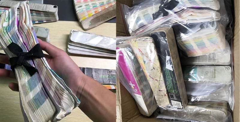 从这些陈旧的PANTONE潘通色卡中看出来了