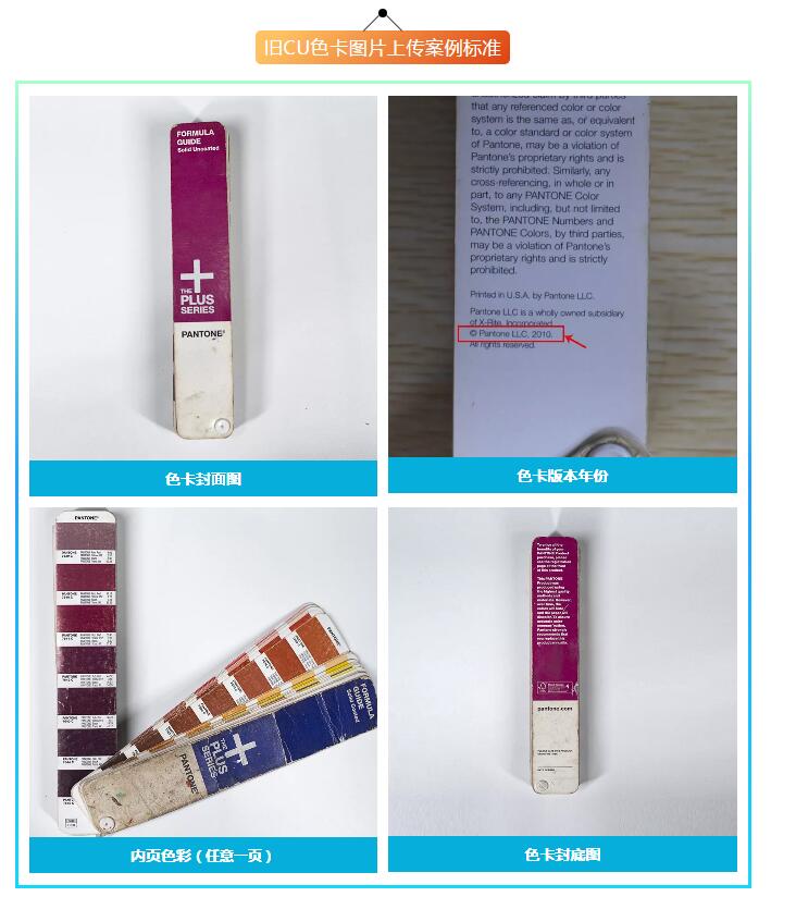 1、将你旧的cu色卡封面、版本、内页色彩、封底各拍照一张上传至系统,系统将根据您色卡的版本、完整度和变色度自动评分,评分最高者胜出赢得奖品;