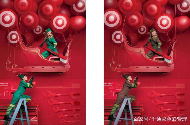 这个海报的主色是大面积背景色,而主角是身穿绿色的两个儿童,绿色与红色形成强烈的互补关系,所以增大色相差可以很大程度的衬托出主角。