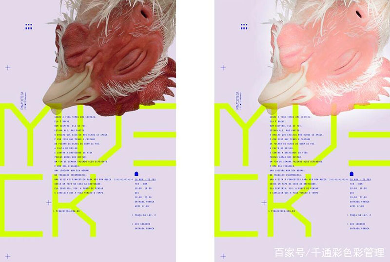 海报的主角显然是红色的鸡头,而背景和文字都用了明度较高的颜色,这就让明度较低的红色异常醒目。而如果将红色的明度提高到与背景色的明度相近,整体的色调是统一了但是对于想要突出和强调主角这就不是很好了。