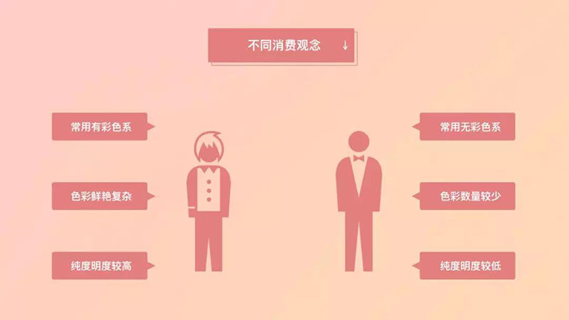 一、不同的性别偏好:我们都知道男性和女性喜欢的色彩是不一样的,比如女性更喜欢红色和粉色,而男性通常喜欢黑色和灰色等。