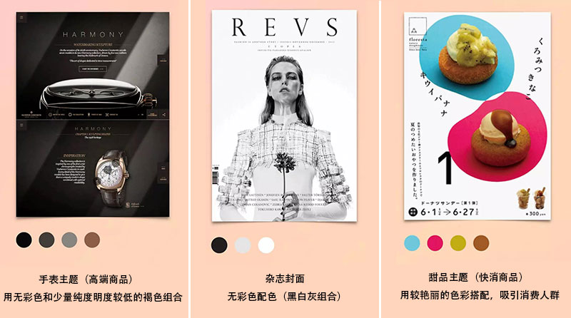 三、不同的消费观念:所谓不同的消费观念可分为追求经济实惠和高端品质。如果我们在设计时配色需要考虑特定受众群体,根据受众群体的消费观念来选择配色方案也是一种色彩搭配方式。