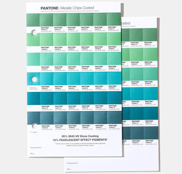 新版高级金属色卡的光泽是亮光的,色彩印制于通用的 100 磅光面铜版纸上,有提供的色样显示光泽水性与特殊涂层的效果,每种颜色均显示专属编号,依色谱顺序排列,色卡指南后方附有索引标明色彩页面位置,金属色卡优点在于包装用金属色易于印制与涂层,不会有失去光泽、变色、粉末浮悬或污点的现象,扩充与补全传统专色色系。