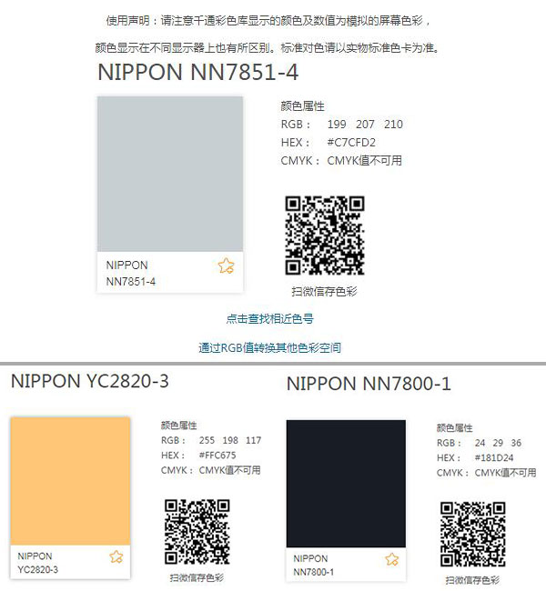 应用立邦推荐主色彩号NIPPON NN7851-4(银币),建议搭配色彩色号分别有YC2820-3(幸运彩)、NN7800-1(纯黑);