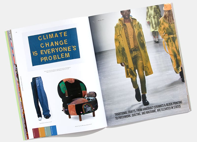 《色彩观点》第六期讲述一个新的设计趋势已经上升至突出另外一个词:狂热,一种充满活力打破常规的叛乱思维,将想表达的主题和设计感汇集在一起,体现出一种非常乐观的叛逆文化。它代表着积极主义的宣言、自我表达的许可和可持续发展的激励方法。随着民间工艺的丰富多彩、年轻化的更新,未来的一切将变得更酷。