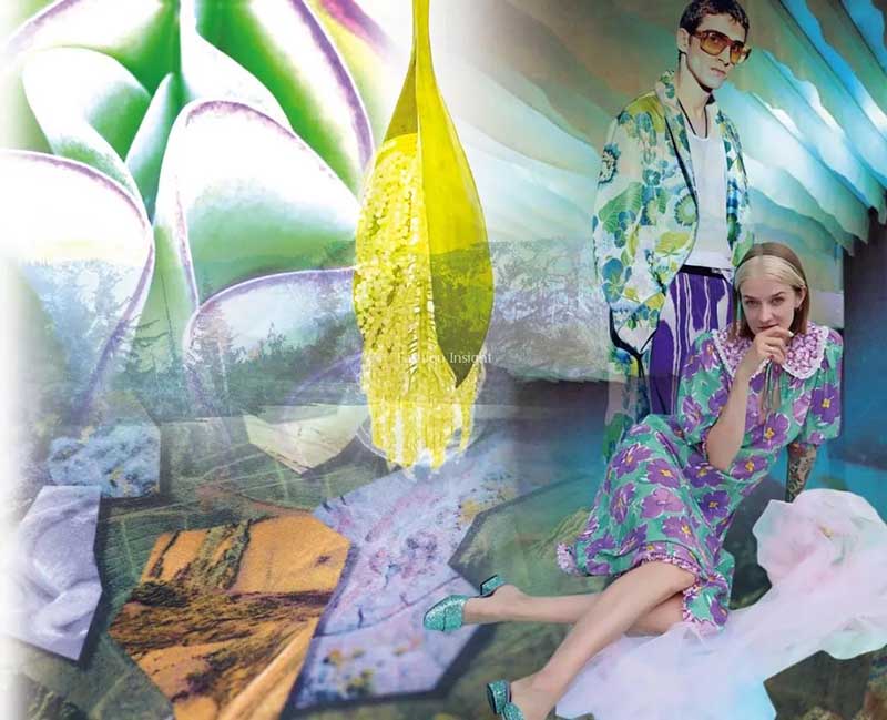 迎合智慧时代的高科技表现,数字化外观带来引人注目的醒目效果,高性能纺织品提供耐久实用的功能性与便捷性。几何变形、数字电波、柔焦效果、3D视幻、像素化等几何或花卉图案通过提花、印花或复合工艺,实现对数字世界的多样表达;超强色彩饱和度和夸张丰富的印花契合逃避现实主义基调,为潮流单品注入顽趣个性和欢快动感;变体条纹及色块以丰富明艳的色彩设计颠覆传统造型;赛博美学复兴,3D设计融合自由无序的混搭方式碰撞出复古新未来的奢华风格;花朵、波点、几何、条纹、格纹、风景的变幻组合诠释极具地域特色的宅度假魅力;未来科技主义金属外观面料与抗菌抑菌等功能性内涵相结合,是未来值得探索的创新方向。