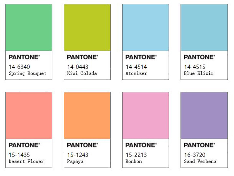 诸如PANTONE 15-1243 Papaya (PANTONE 1565 C),PANTONE 14-0443 Kiwi Colada (PANTONE 388 C) 及 PANTONE 15-1435 Desert Flower (PANTONE 177 C) 等色彩,都有一种温柔的亮丽,让你忍不住微笑,引发正向的感觉,并改变我们的经验。这些色彩令人自我感觉良好的因素是设计界目前最大的谈论焦点之一。