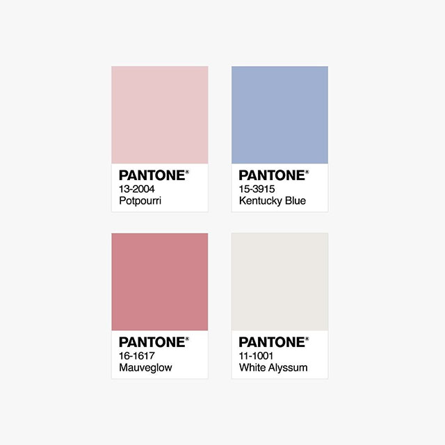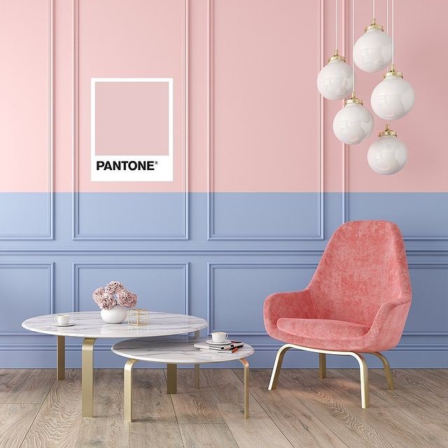 下面这个案例使用的pantone色号有13-2004、15-3915 、16-1617、11-1001,紫蓝色与粉色相搭配,环境中心颜色虽未粉色,但紫蓝色的存在也是画面的亮点,室内整体营造的环境氛围给人一种独特的高级感,暖暖的、轻盈的。