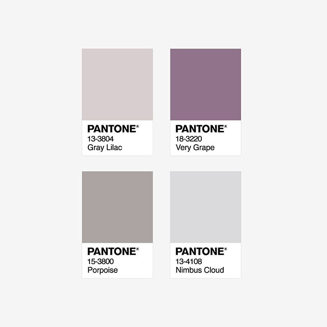 淡紫色调,加入多种不同明度的灰色系色彩,会是什么样的感觉呢?下面这个案例,非常的有个性,紫色在环境氛围中成了抢眼的存在,多了一份神秘感。案例应用的pantone彩通色号分别有:13-3804、18-3220、15-3800、13-4108;