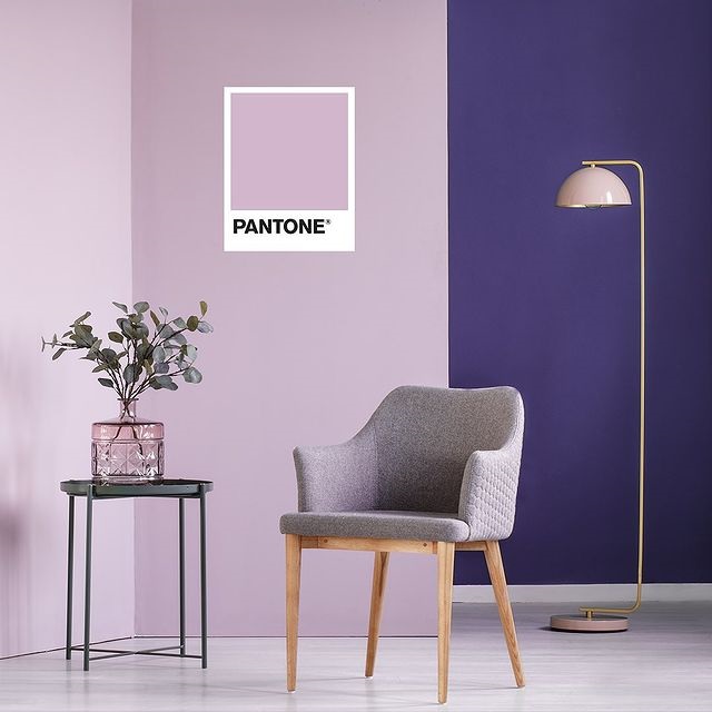 相比第一个应用案例,下面这个案例应用的紫色调在彩度上较为浓厚,同样是加入了粉色系搭配,却巧妙地调整了整个环境所需的氛围。彩度高的紫色在这里少了些轻盈感,但一点都不失高级感。反而看久了觉得有一点点的复古风存在。案例应用的pantone彩通色号分别有:14-3206、19-3750、17-3911、15-1906;