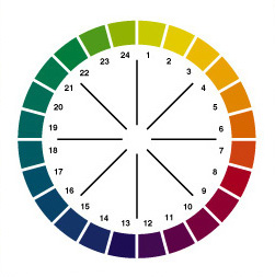 此系统是由德国科学家奥斯特于1914年所提出。它假设八个色调和四个基本的颜色:黄色、深蓝色、红色和海绿色。那些颜色再分为24个颜色转轮。