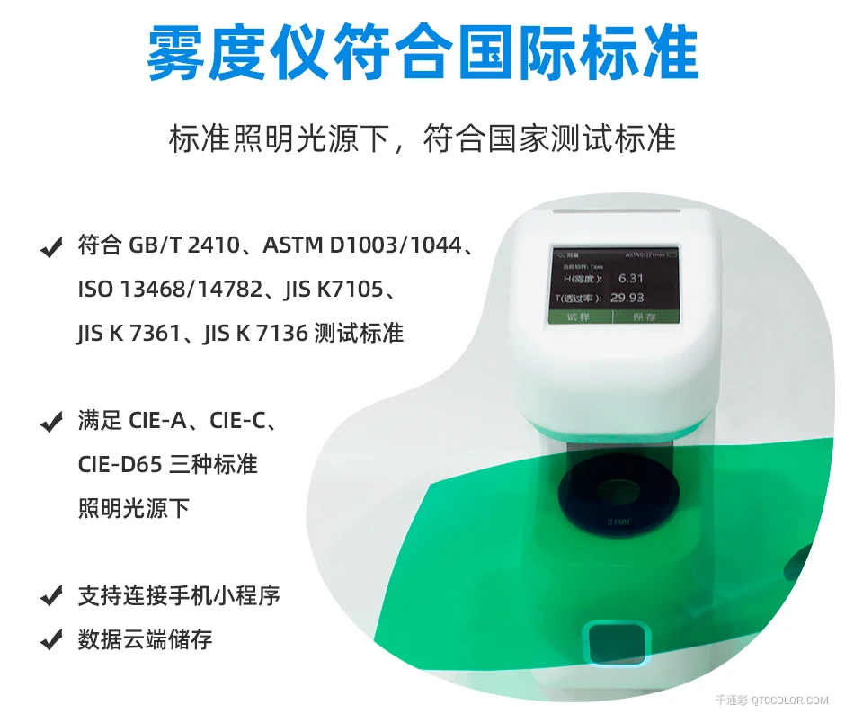 彩谱便携式雾度仪DH10/13透过率计 符合以下测试标准:GB/T 2410、ASTM D1003/1044、ISO 13468/14782、JIS K7105、JIS K 7361、JIS K 7136