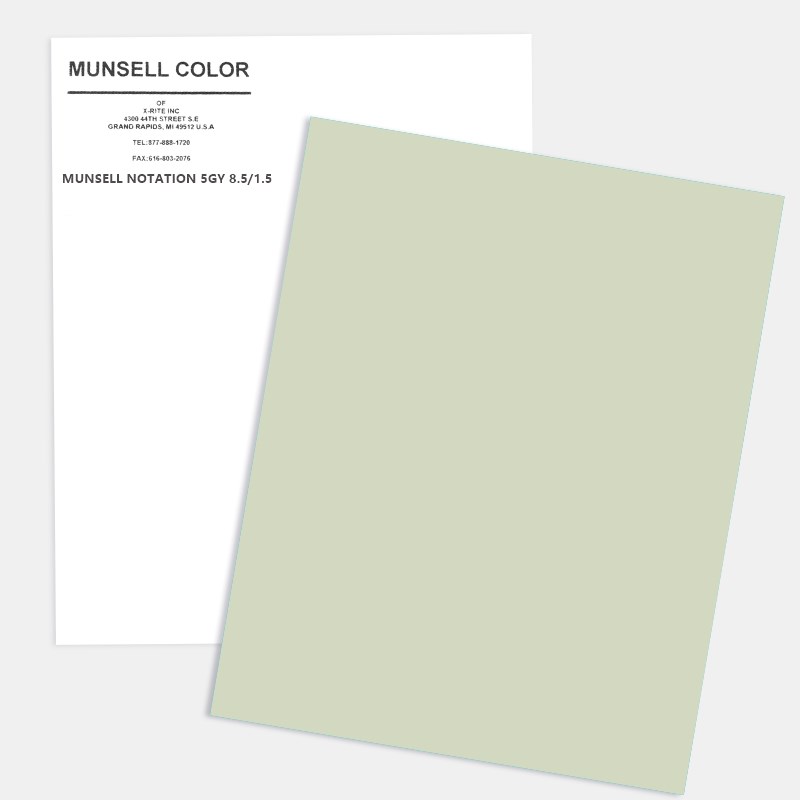 “MUNSELL 5GY 8.5/1.5” 可以在以下实物色卡中找到:
